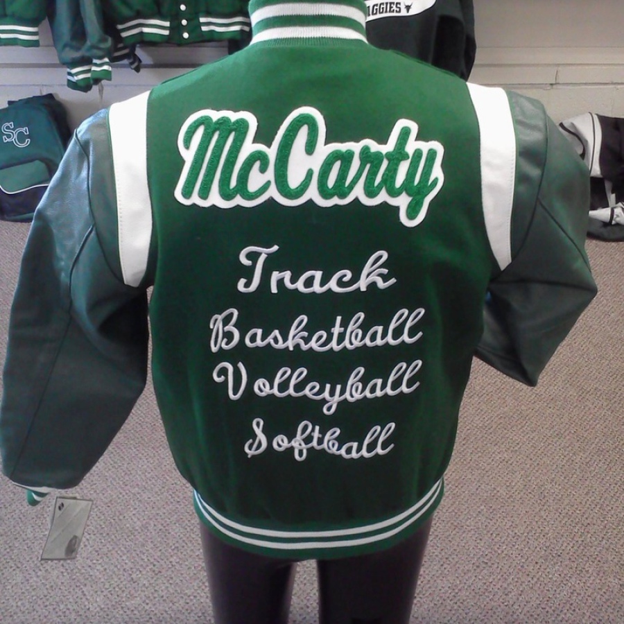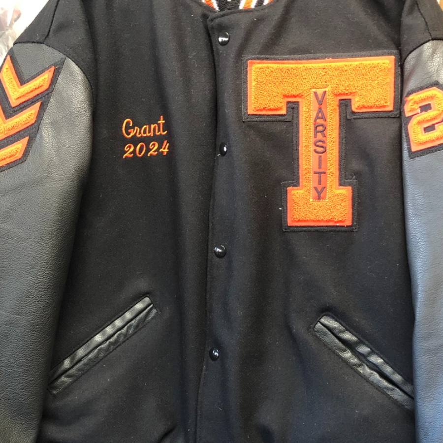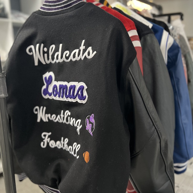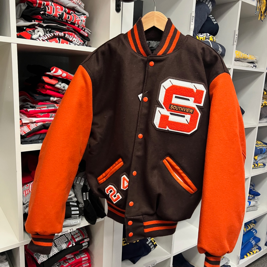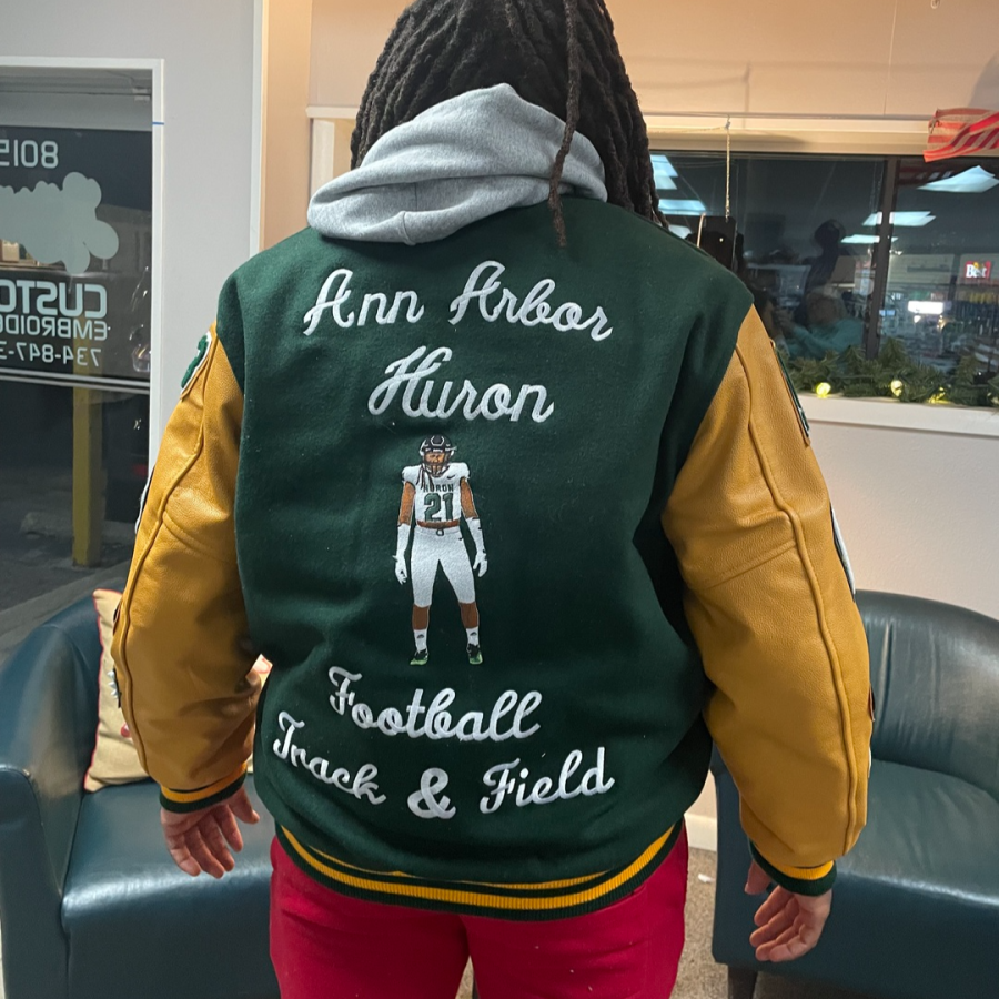 We offer custom varsity jackets for most high schools in the Ohio and Michigan areas. We have some local school jackets in stock, and we can order any school jacket needed. Please call us for our current in-stock jacket selections, or we can order your school jacket as needed. We embroider all of our jackets, and sew on the patches, in our shop. We can order custom chenille names and sports patches as well. If your school's varsity jacket is in our current stock, we can usually custom decorate in a couple of weeks, depending on our current volume. Your student can try on jackets in our showroom, and we offer after-hour appointments. Please call us for details at 734.847.3881