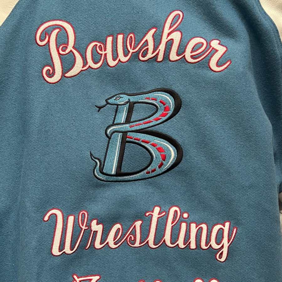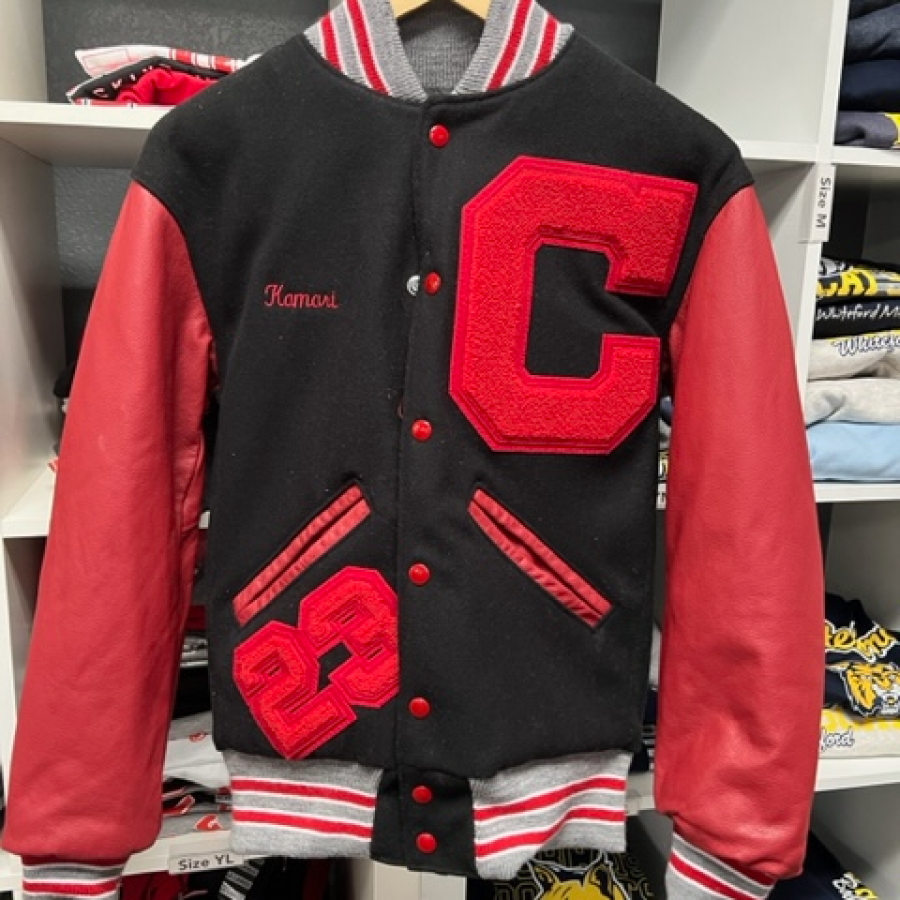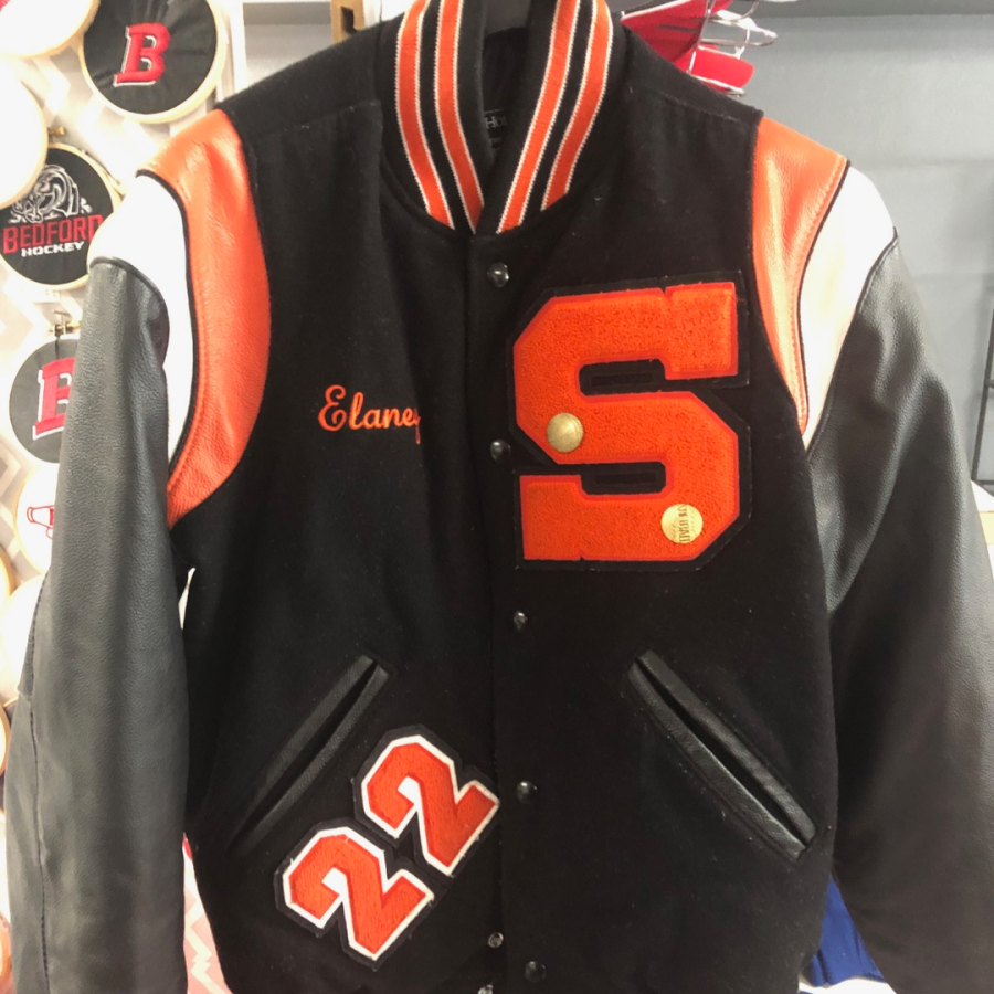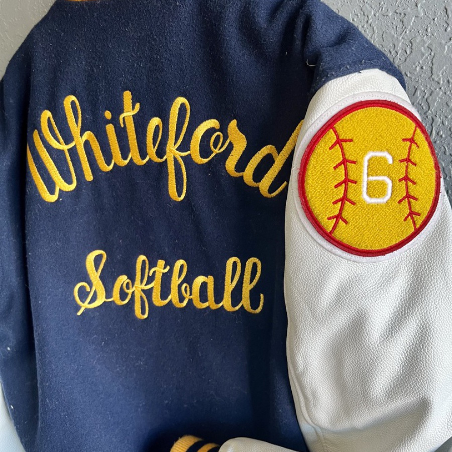 We offer custom varsity jackets for most high schools in the Ohio and Michigan areas. We have some local school jackets in stock, and we can order any school jacket needed. Please call us for our current in-stock jacket selections, or we can order your school jacket as needed. We embroider all of our jackets, and sew on the patches, in our shop. We can order custom chenille names and sports patches as well. If your school's varsity jacket is in our current stock, we can usually custom decorate in a couple of weeks, depending on our current volume. Your student can try on jackets in our showroom, and we offer after-hour appointments. Please call us for details at 734.847.3881